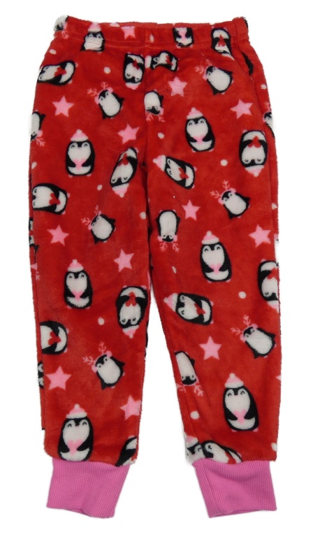 Červené plyšové pyžamové kalhoty s tučňáky St. Bernard