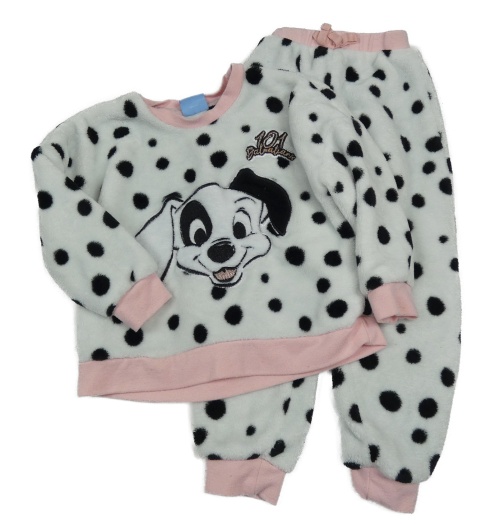 Bílé puntíkaté chlupaté pyžamo s dalmatinem Tu