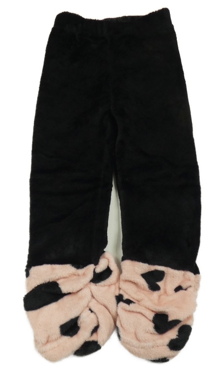 Černo-růžové chlupaté pyžamové kalhoty s puntíky