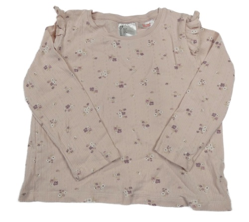 Světlerůžové žebrované květované pyžamové triko s volánky H&M