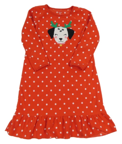 Červená puntíkatá fleecová noční košile s pejskem Carter´s