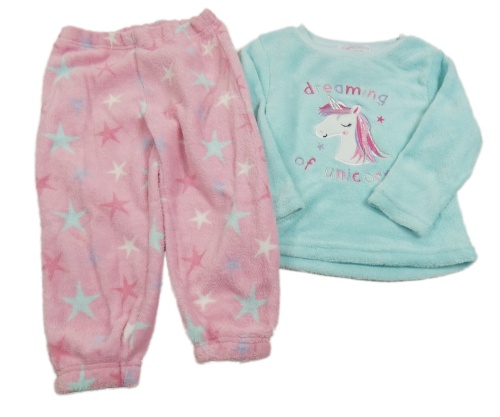 Modro-růžové chlupaté pyžamo s jednorožcem