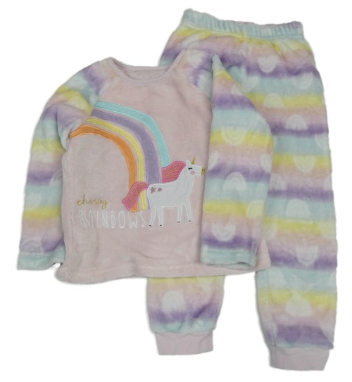 Růžovo-pruhované chlupaté pyžamo s jednorožci Nutmeg