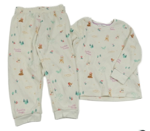 Smetanové fleecové pyžamo se zvířátky a stromečky M&S
