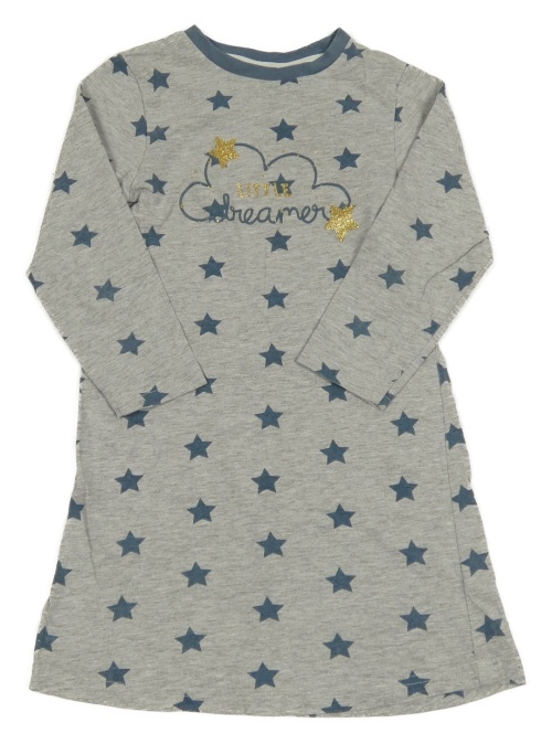 Šedo-modrošedá melírovaná noční košile s hvězdičkami a obláčkem