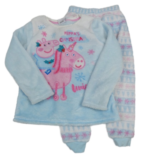 Světlemodro-bílé chlupaté pyžamo s Peppou a jednorožcem George