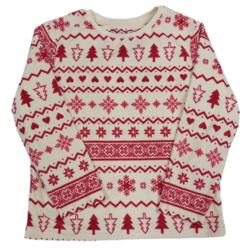 Smetanovo-červená vzorovaná plyšová pyžamová mikina s vločkami a stromečky a srdíčky PRIMARK