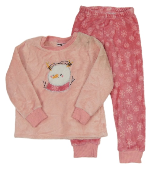 Světlerůžovo-růžové plyšové pyžamo se sněhuláčkem a vločkami Lily & Dan