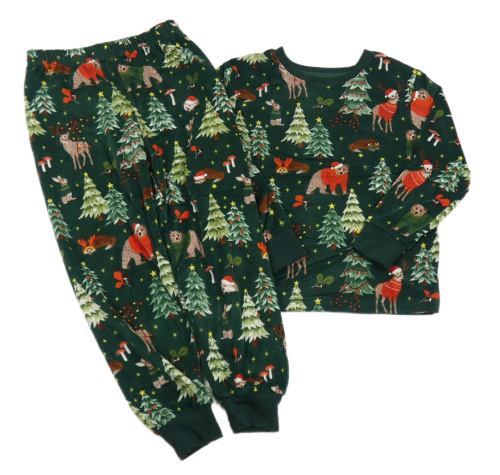 Tmavozelené plyšové pyžamo s vánočními obrázky Primark