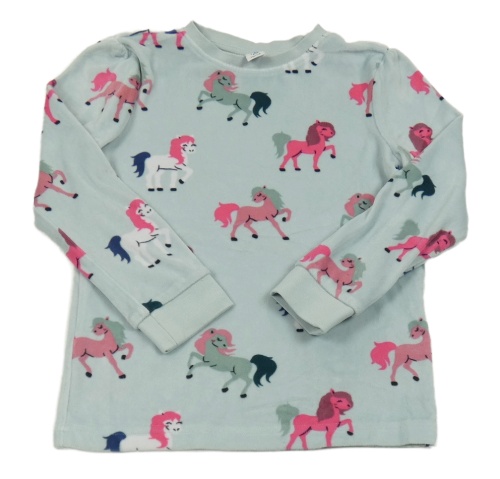 Světlemodré plyšové pyžamové triko s jednorožci