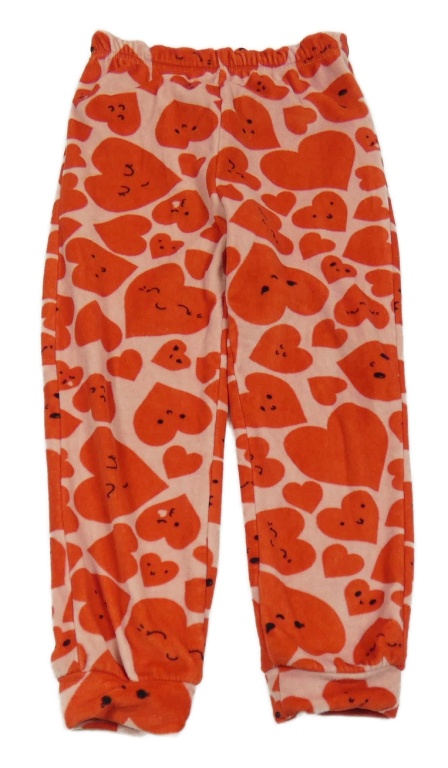 Světlerůžové plyšové pyžamové kalhoty s červenými srdíčky Tu