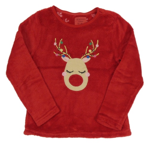 Červená plyšová pyžamová mikina se sobem PRIMARK
