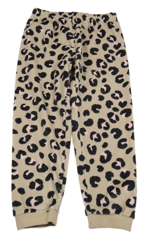 Pudrovo-černé plyšové leopardí pyžamové kalhoty