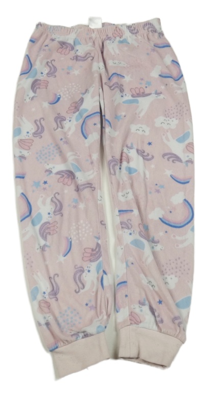 Světlerůžové plyšové pyžamové kalhoty s jednorožci