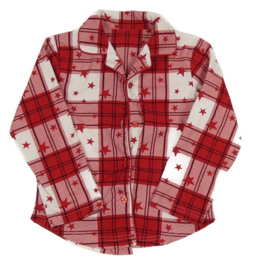 Červeno-bílý kostkovaný flanelový pyžamový kabátek s hvězdičkami