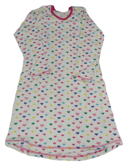 Bílo-malinová noční košile s barevnými srdíčky a hvězdičkami