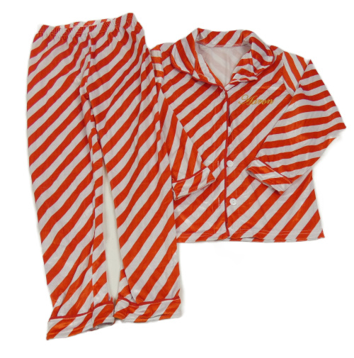 Červeno-bílé pruhované sametové pyžamo s límečkem