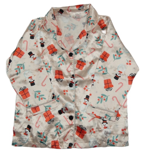 Broskvový saténový pyžamový kabátek s vánočním motivem