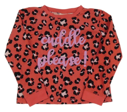 Korálovo-černo-růžové fleecové pyžamové triko s nápisem a leopardím vzorem Alive