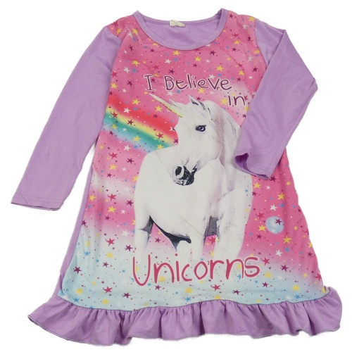 Růžovo-fialová noční košile s jednorožcem a hvězdičkami