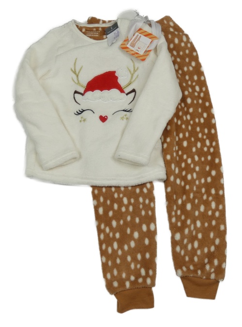 Nové - bílo-hnědé plyšové pyžamo se sobem PRIMARK