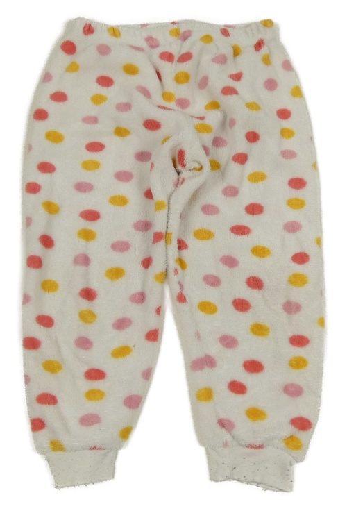 Bílé chlupaté crop pyžamové kalhoty s růžovými puntíky