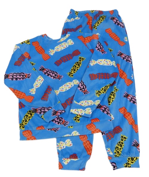 Modré plyšové pyžamo s bonbóny Tu