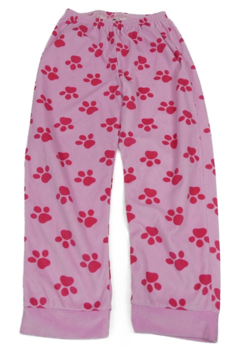 Růžové plyšové pyžamové kalhoty s ťapičkami