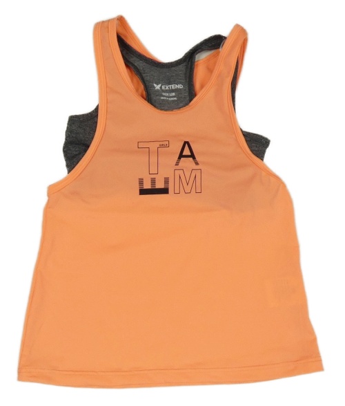 Neonově oranžový funkční sportovní top s nápisem a všitou tmavošedou melírovanou lambádou EXTEND