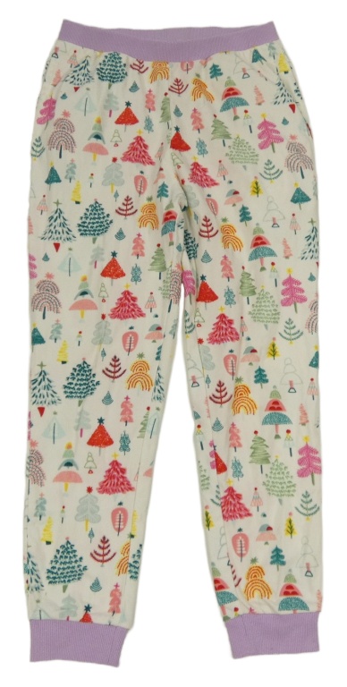 Bílo-barevné sametové pyžamové kalhoty s vánočními obrázky a lila lemem Nutmeg