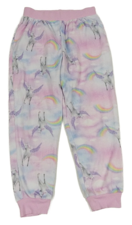 Růžovo-světlemodro-lila plyšové pyžamové kalhoty s jednorožci a duhami F&F