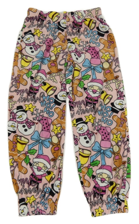 Růžovo-barevné plyšové pyžamové kalhoty s vánočním motivem