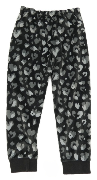 Tmavošedo-šedé plyšové pyžamové kalhoty s leopardím vzorem