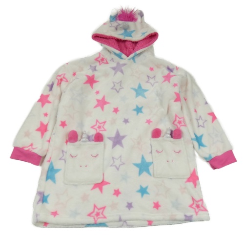 Bílo-křiklavě růžová plyšová oversize mikina s hvězdičkami a jednorožci/kapsami a kapucí PRIMARK