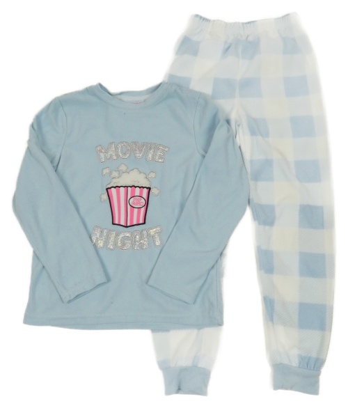 Světlemodro-kostkované fleecové pyžamo s popcornem