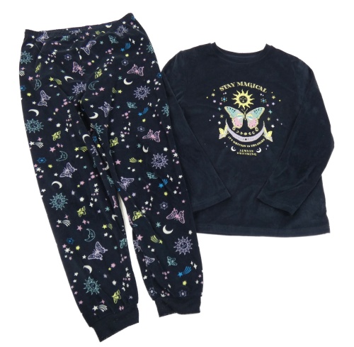 Tmavomodré plyšové pyžamo s motýlky Primark