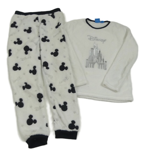Bílé chlupaté pyžamo s hradem a Mickey Mousem Disney