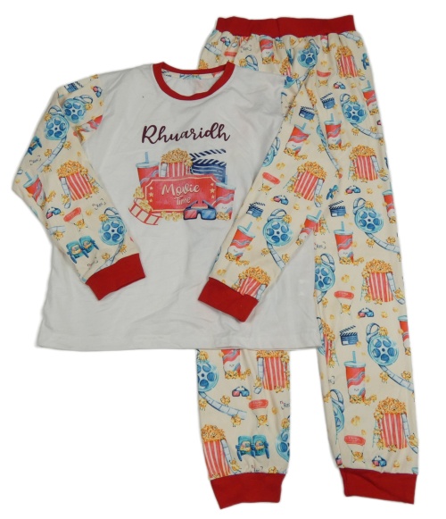 Bílo-smetanovo-červené žebrované pyžamo s popcornem