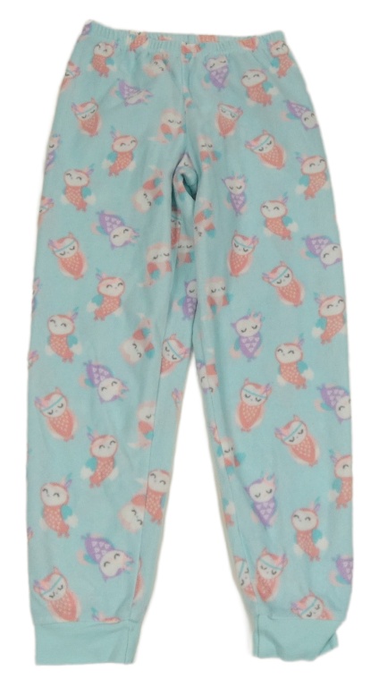 Světlemodré pyžamové fleecové kalhoty se sovami