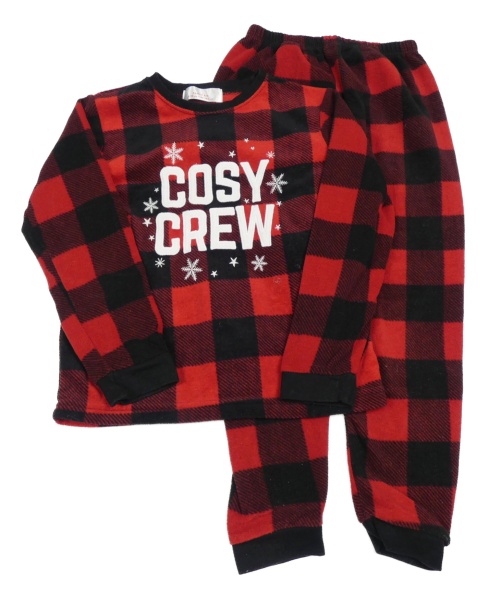 Červeno-černé kostkované fleecové pyžamo s nápisem
