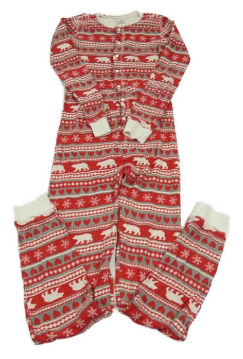 Červeno-šedo-krémový vzorovaný overal