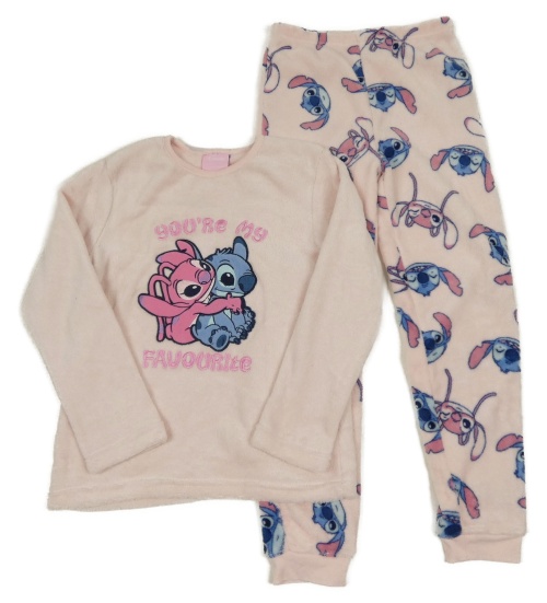 Světlerůžové chlupaté pyžamo se Stitchem a Angelou Disney