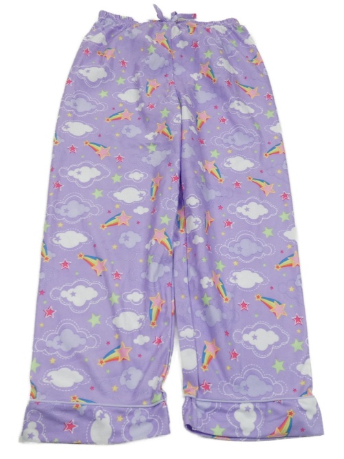 Lila pyžamové kalhoty s mraky a hvězdami