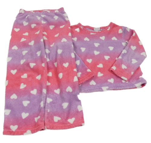 Růžovo-fialové chlupaté pyžamo se srdíčky