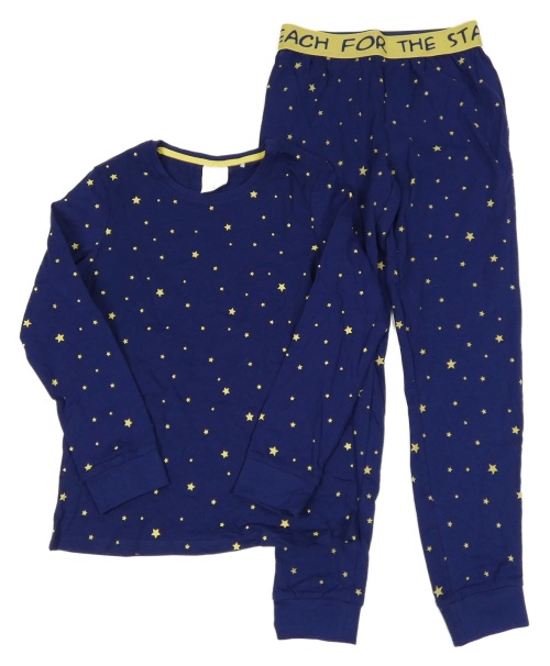 Tmavomodro-okrové pyžamo s hvězdičkami a nápisy L&D
