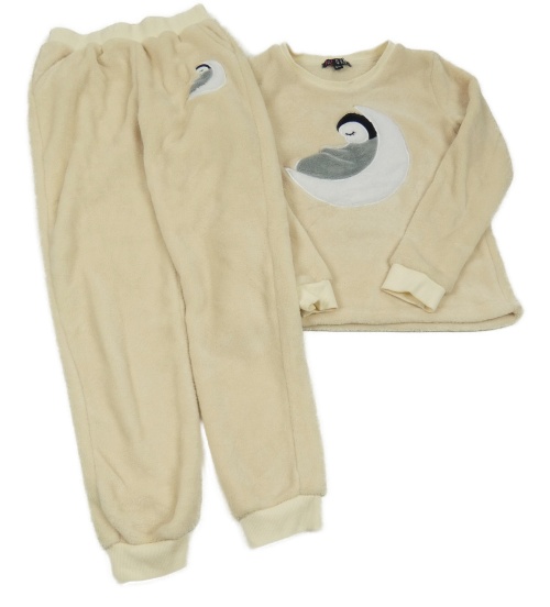 Světlebéžové plyšové pyžamo s tučňáčkem a měsícem A2Z4 Kids