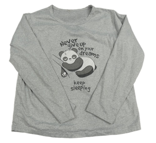 Šedé melírované pyžamové triko s pandou a nápisy SHEIN