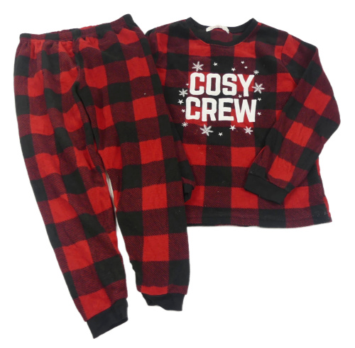 Červeno-černé kostkované fleecové pyžamo s nápisy a vločkami