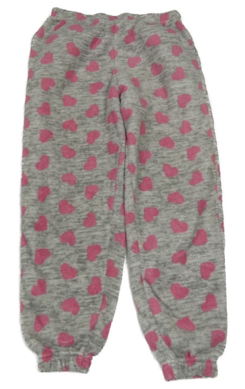Šedo-růžové plyšové pyžamové kalhoty se srdíčky