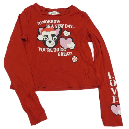 Červené crop vánoční pyžamové triko s obrázky H&M